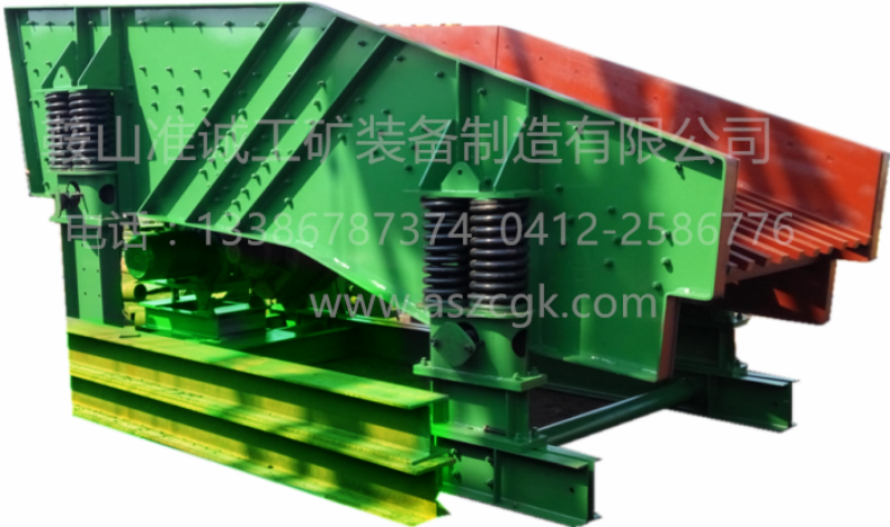此款棒條式給料機通過角帶驅(qū)動箱式激振器,使給料機產(chǎn)生直線運動軌跡。機體結(jié)構(gòu)為框架式,環(huán)槽鉚釘聯(lián)接,襯板、棒條采用錳鋼制造,結(jié)構(gòu)強度高,耐磨損,耐撞擊。特別適合于做建筑石料、金屬礦石大破碎的給料用。
